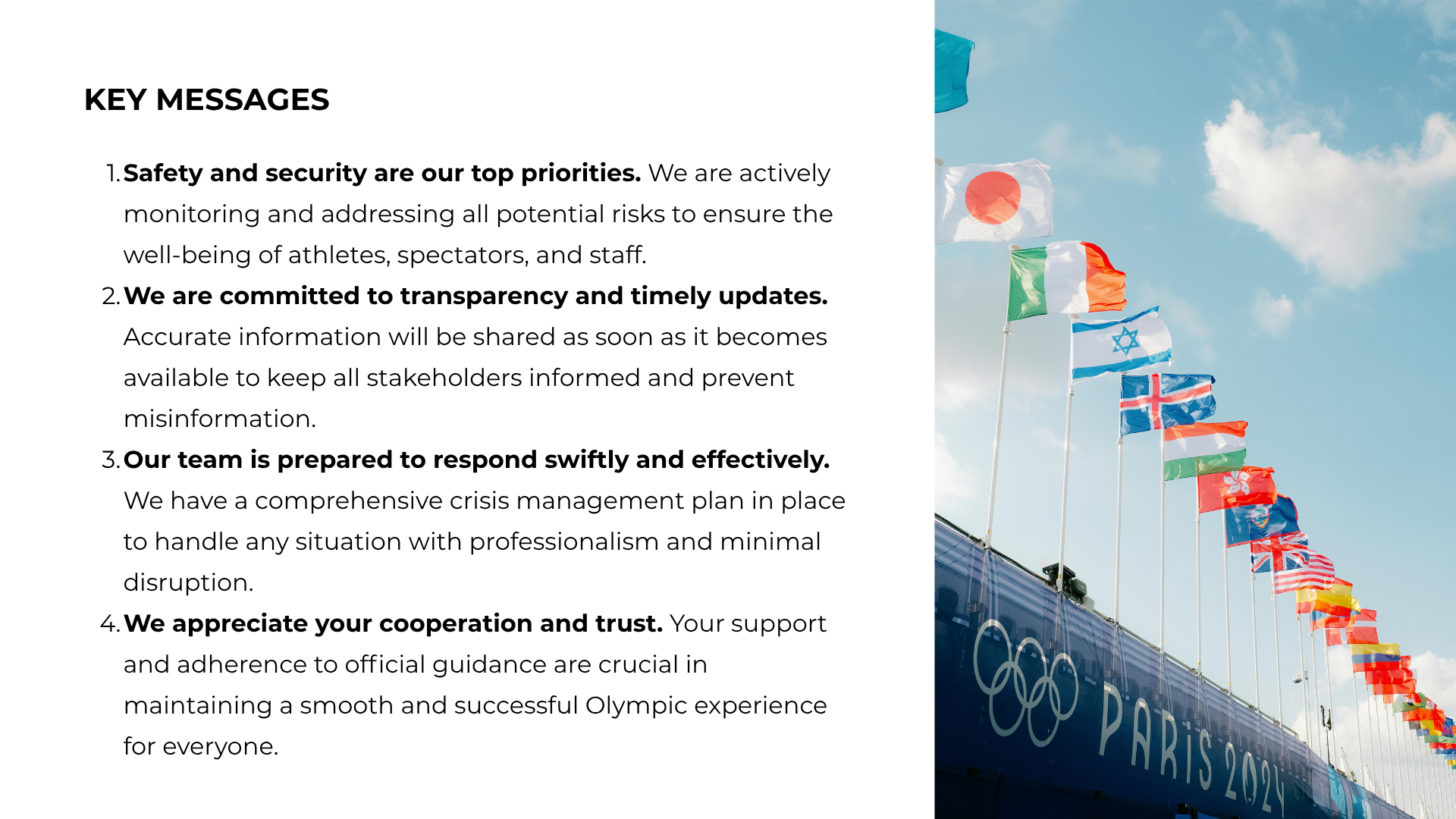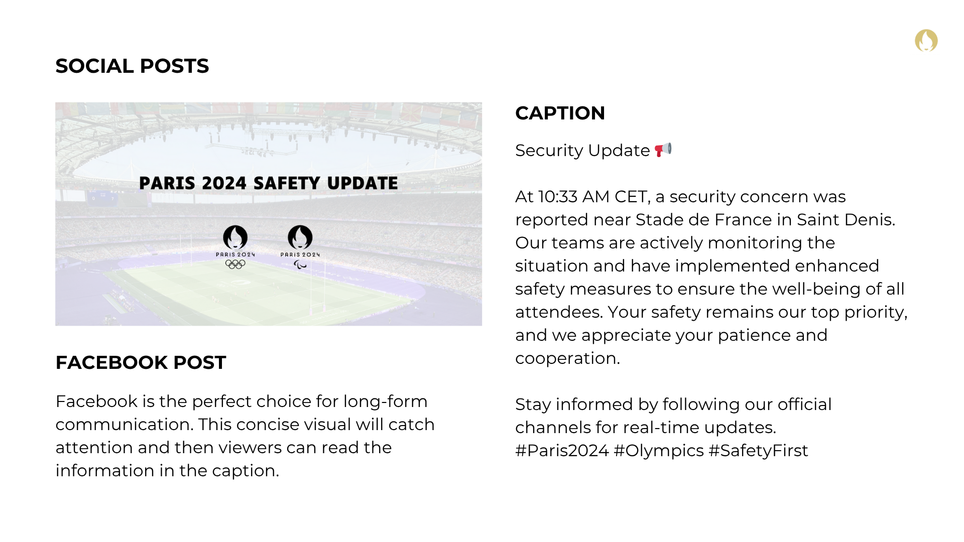This campaign develops a crisis communication and corporate social repair strategy for the Paris 2024 Olympics, featuring official branding, holding statements, press materials, and social templates. It highlights professional skills in crisis management, strategic messaging, cross-platform content creation, and audience engagement across channels.